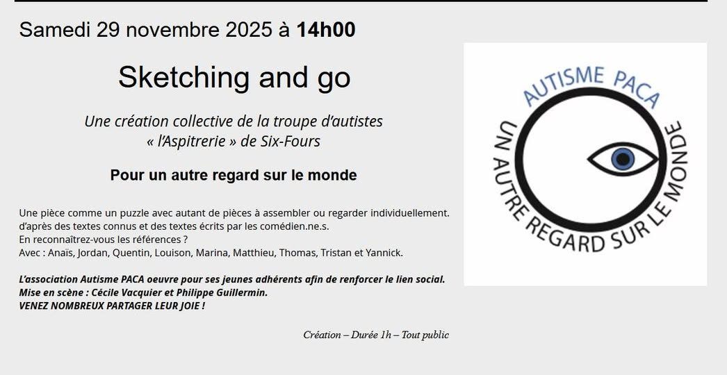 Le 38 ième Festival de Théâtre amateur de la Cadière d'Azur accueille cette année encore une des troupes de Théâtre Six Fournaise d'Autisme PACA "L'Aspitrerie" 29 Novembre 2025 Merci à notre partenaire la caisse d'épargne Côte d'Azur pour son soutien