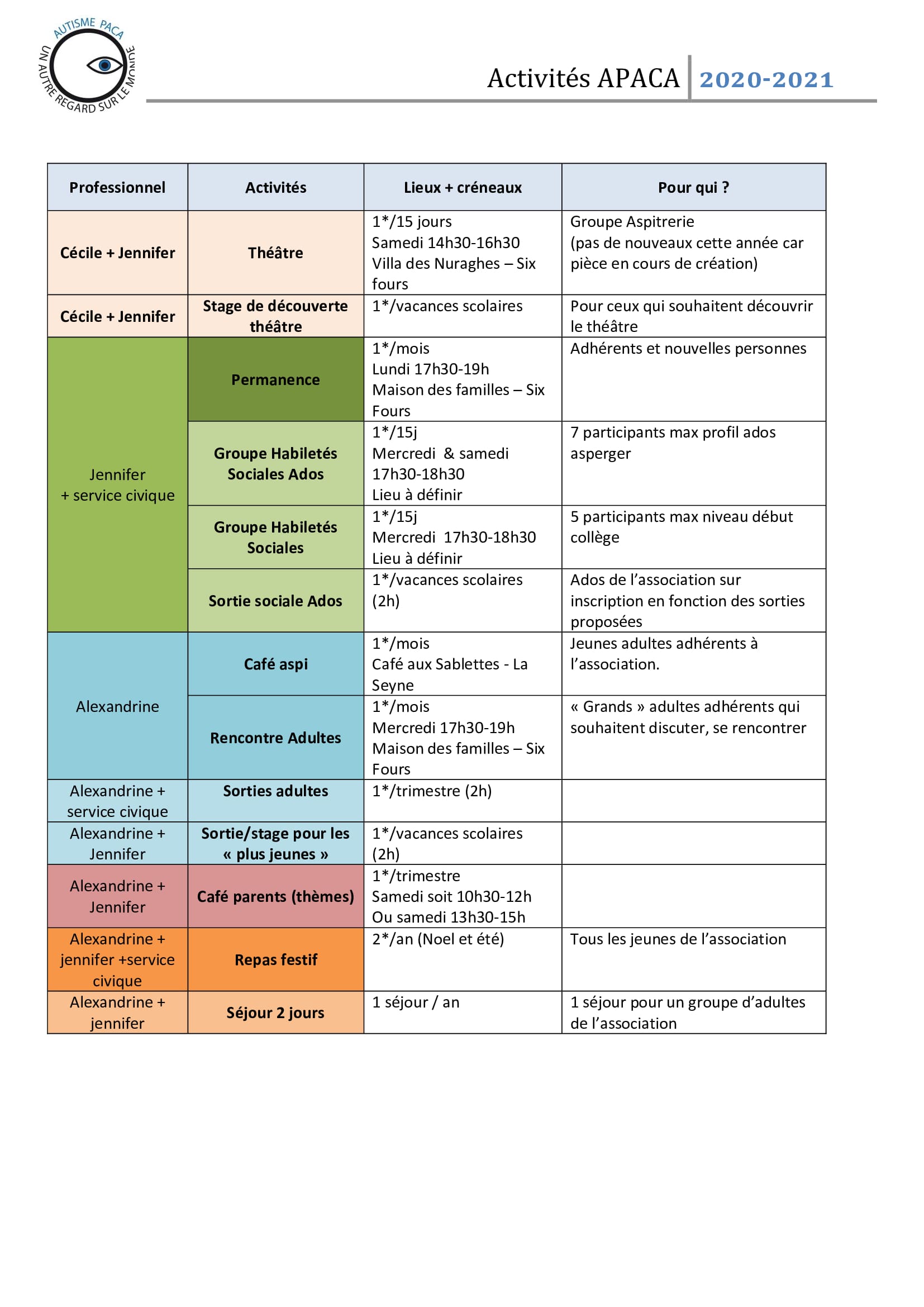 inscription : autismepaca@gmail.com